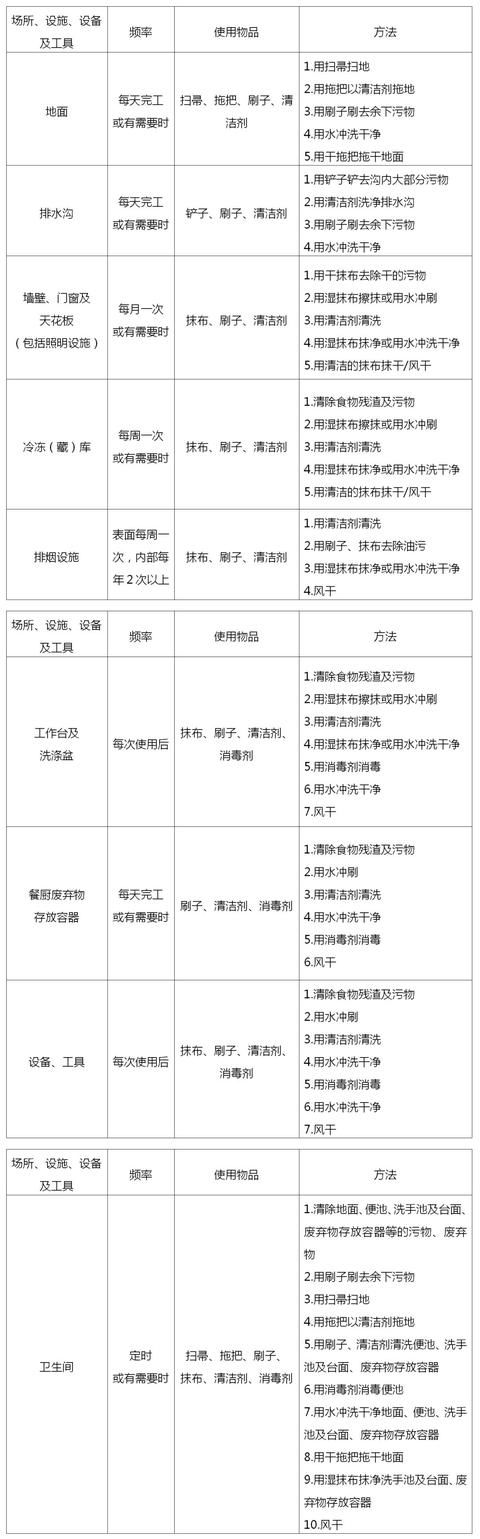 推薦的餐飲服務場所、設施、設備及工具清潔方法